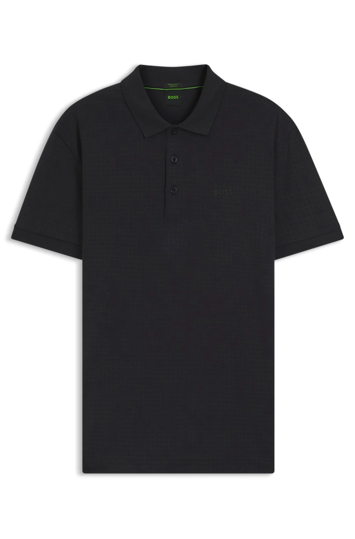 DETAILS Polo AO Zone - 50549358 In stretch-cotton jersey with solid trims and a modern print, this BOSS Menswear polo shirt is a casual essential. Regular fit Logo detail. Regular fit Neckline: Flat-knit collar Number of buttons: 3 Short sleeves Flat-knit cuffs Standard length QUALITY & CARE INSTRUCTIONS Do Not Tumble Dry Machine Wash Cold Gentle Iron Low Heat Quality: 95% Cotton, 5% Elastane Do Not Bleach Do Not Dry Clean