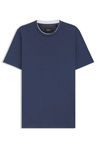 SIZE AND FIT The model wears a size M and is 6'2" tall with a, 35" chest, 29" waist and 35" hips. DETAILS L-Tesar 115 - 50549333 Featuring a double collar with contrast detailing, this regular-fit BOSS Menswear T-shirt is an elevated basic. Fine, lightweight cotton-silk blend. Nubuck logo label. Regular fit Neckline: Crew neck Short sleeves Standard length QUALITY & CARE INSTRUCTIONS Quality: 52% Cotton, 48% Silk Iron Low Heat Reduced Dry Clean Do Not Tumble Dry Hand Wash Only Do Not Bleach