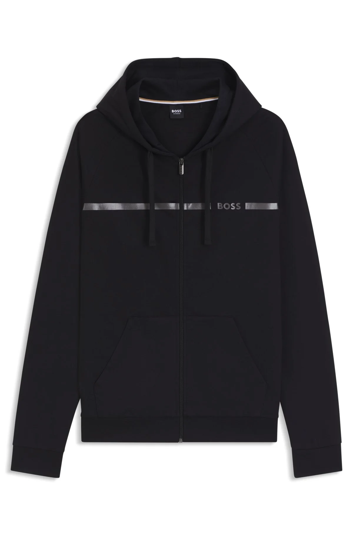 SIZE AND FIT The model wears a size M and is 6'2" tall with a, 36" chest, 31" waist and 38" hips. DETAILS With a printed logo and stripe, this regular-fit BOSS Menswear jacket is ideal for elevating off-duty looks. Crafted in soft cotton terry. Regular fit Neckline: Hooded Pockets top: Kangaroo pocket Authentic Jacket H - 50550571 QUALITY & CARE INSTRUCTIONS Machine Wash Warm Material: 100% Cotton Do Not Dry Clean Do Not Bleach Do Not Tumble Dry Iron Medium Heat