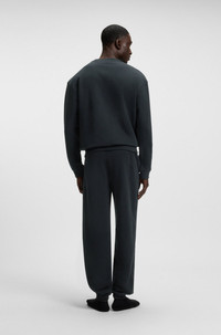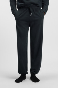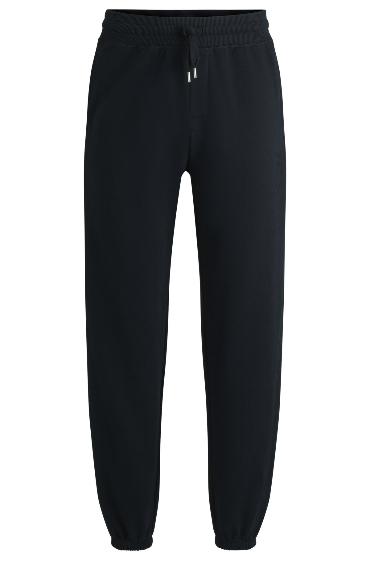 DETAILS David Pants - 50540523 With ribbed trims for textural contrast, these BOSS Menswear tracksuit bottoms have a soft, peached feel. Tonal logo in an outline design. Drawstring waist. Covered waistband Drawstring Pockets bottom front: Side pockets QUALITY & CARE INSTRUCTIONS Machine Wash Warm Do Not Bleach Iron Low Heat Quality: 100% Cotton Do Not Tumble Dry Do Not Dry Clean