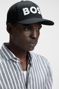 SIZE AND FIT The model wears a size pce. and is 6'1" tall with a, 33" chest, 24" waist and 36" hips. DETAILS Sevile - 50536482 Embroidered with a tonal logo, this BOSS Menswear cap adds signature appeal to your casual looks. Secure clamp buckle, breathable cotton twill. QUALITY & CARE INSTRUCTIONS Do Not Dry Clean Do Not Tumble Dry Hand Wash Only Quality: 100% Cotton, Lining: 65% Polyester, 35% Cotton Do Not Bleach Do Not Iron