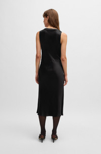 SIZE AND FIT The model wears a size 4 and is 5'8" tall with a, 33" chest, 25" waist and 35" hips. DETAILS Dawida - 50528773 A modern dress with sleeveless styling by BOSS. This feminine piece is crafted in fluent satin with a draped cowl neckline. Regular fit Neckline: Wide neck Fastening top: Side zip closure No cuffs Unlined Fit back length: 105 cm (41 inches) QUALITY & CARE INSTRUCTIONS Quality: 68% Viscose, 32% Lyocell Do Not Bleach Reduced Dry Clean Do Not Tumble Dry Do Not Wash Iron Low Heat