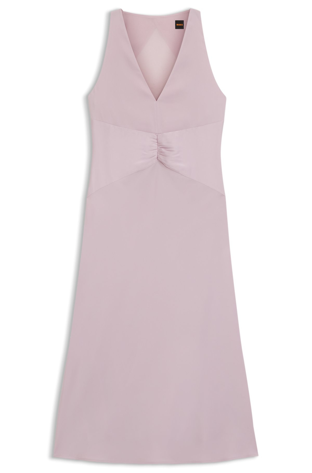 DETAILS C_DICLAN - 50544019 Crafted in drapey crinkle satin, this BOSS Womenswear dress is an elegant day-to-evening option. Gathered front and rear Georgette detailing. Fit back length: 115 cm (45 inches) QUALITY & CARE INSTRUCTIONS Quality: 97% Polyester, 3% Elastane, upper part: 100% Polyester Do Not Bleach Reduced Dry Clean Do Not Tumble Dry Iron Low Heat Machine Wash Cold Gentle