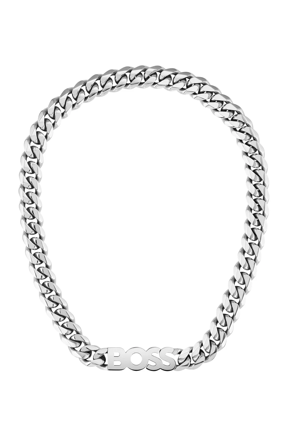 DETAILS KASSY - JWLRY_1580441 A bold curb-chain necklace by BOSS Jewelry, designed in stainless steel with a polished logo plate for a distinctive look. Length: 51cm QUALITY & CARE INSTRUCTIONS Quality: 100% Stainless steel