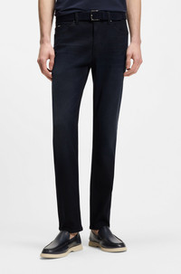 SIZE AND FIT The model wears a size 32/32 and is 6'2" tall with a, 33" chest, 26" waist and 34" hips. DETAILS With their stretchy knitted denim and soft blue tone, these BOSS Menswear jeans are great for everyday wear. Cut to a slim fit. Slim fit Regular rise Button and zip closure Pockets bottom front: Side pockets Slim leg Pockets bottom back: Patch pocket Standard length Fit foot width: 35,4 cm (13.9 inches) P-Delaware - 50555207 QUALITY & CARE INSTRUCTIONS Do Not Tumble Dry Iron Medium Heat Machine Wash Cold Gentle Do Not Dry Clean Material: 98% Cotton, 2% Elastane Do Not Bleach