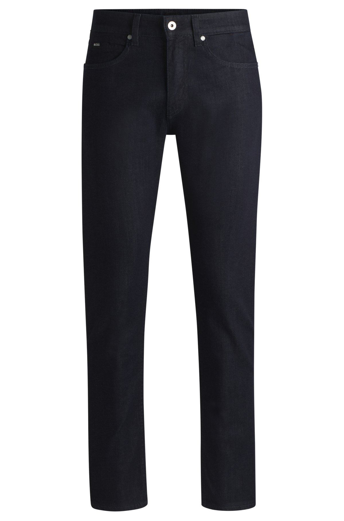 SIZE AND FIT The model wears a size 32/32 and is 6'0" tall with a, 35" chest, 27" waist and 36" hips. DETAILS H-Delaware - 50527038 Blended with stretch for flexible comfort, these BOSS Menswear jeans are offered in a neat slim fit. The rich indigo tone is easy to style. Slim fit Regular rise Button and zip closure Pockets bottom front: Side pockets Slim leg Pockets bottom back: Patch pocket Standard length Fit foot width: 35,4 cm (13.9 inches) QUALITY & CARE INSTRUCTIONS Quality: 99% Cotton, 1% Elastane Machine Wash Cold Gentle Iron Medium Heat Do Not Bleach Do Not Tumble Dry Do Not Dry Clean