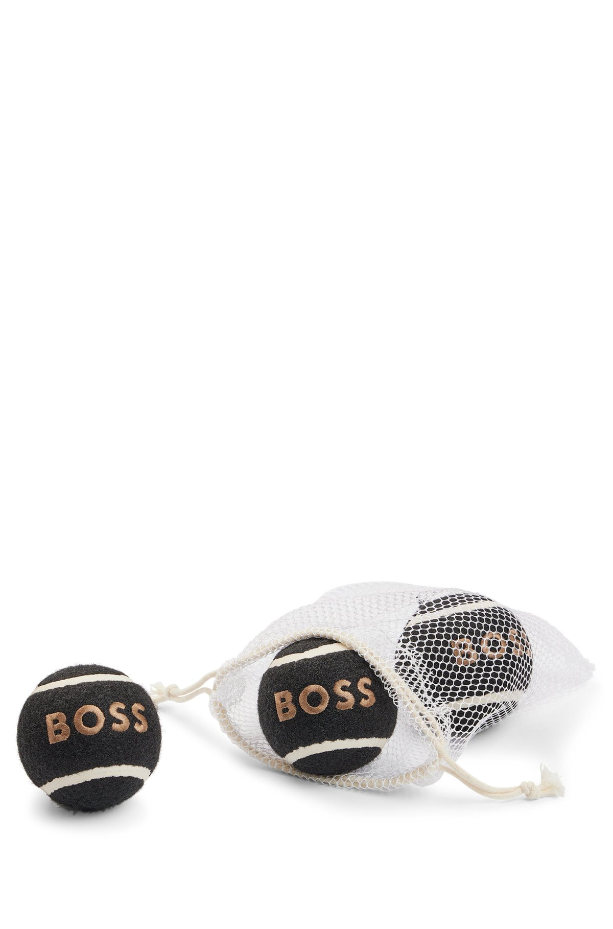 SIZE AND FIT The model wears a size EU:M and is 0'0" tall with a, 0" chest, 0" waist and 0" hips. DETAILS Dog Boss Ball Set - B2FDCT018 Enjoy playtime in style with a set of three BOSS dog balls, presented in a branded mesh travel pouch. Designed with dogs in mind, the balls have a tougher and more resilient core than standard tennis balls, while also featuring a less abrasive outer layer to be more gentle on your pet's teeth. An embroidered BOSS logo on each ball ensures a premium finish. QUALITY & CARE INSTRUCTIONS Do Not Bleach Do Not Tumble Dry Do Not Dry Clean Do Not Iron Do Not Wash