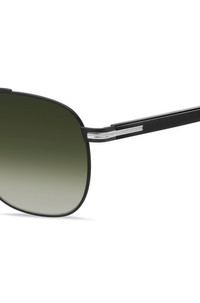 DETAILS BOSS 1723/SK87569K - 58138200 Detailed sunglasses by BOSS Menswear, featuring a double bridge and silver-tone hinges. This pair is crafted in black steel offset by green lenses. Front material: Steel Temple material: Acetate Hinge type: Regular Lens: Shaded Lens material: Polyester Size lens: 2.21 in (56 mm) (0 inches) Size bridge: 0.79 in (20 mm) (0 inch.) Temple Length: 5.9 in (150 mm) (0 inches)