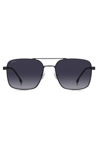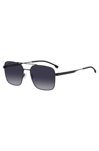 DETAILS BOSS 1695/S003589O - 58138011 Featuring a sportive double bridge, these sunglasses by BOSS Menswear coordinate with any look. Crafted in black steel with ultra-slim logo temples. Front material: Steel Temple material: Steel Hinge type: Regular Lens: Shaded Lens material: Polyester Size lens: 2.28 in (58 mm) (0 inches) Size bridge: 0.71 in (18 mm) (0 inch.) Temple Length: 5.9 in (150 mm) (0 inches)