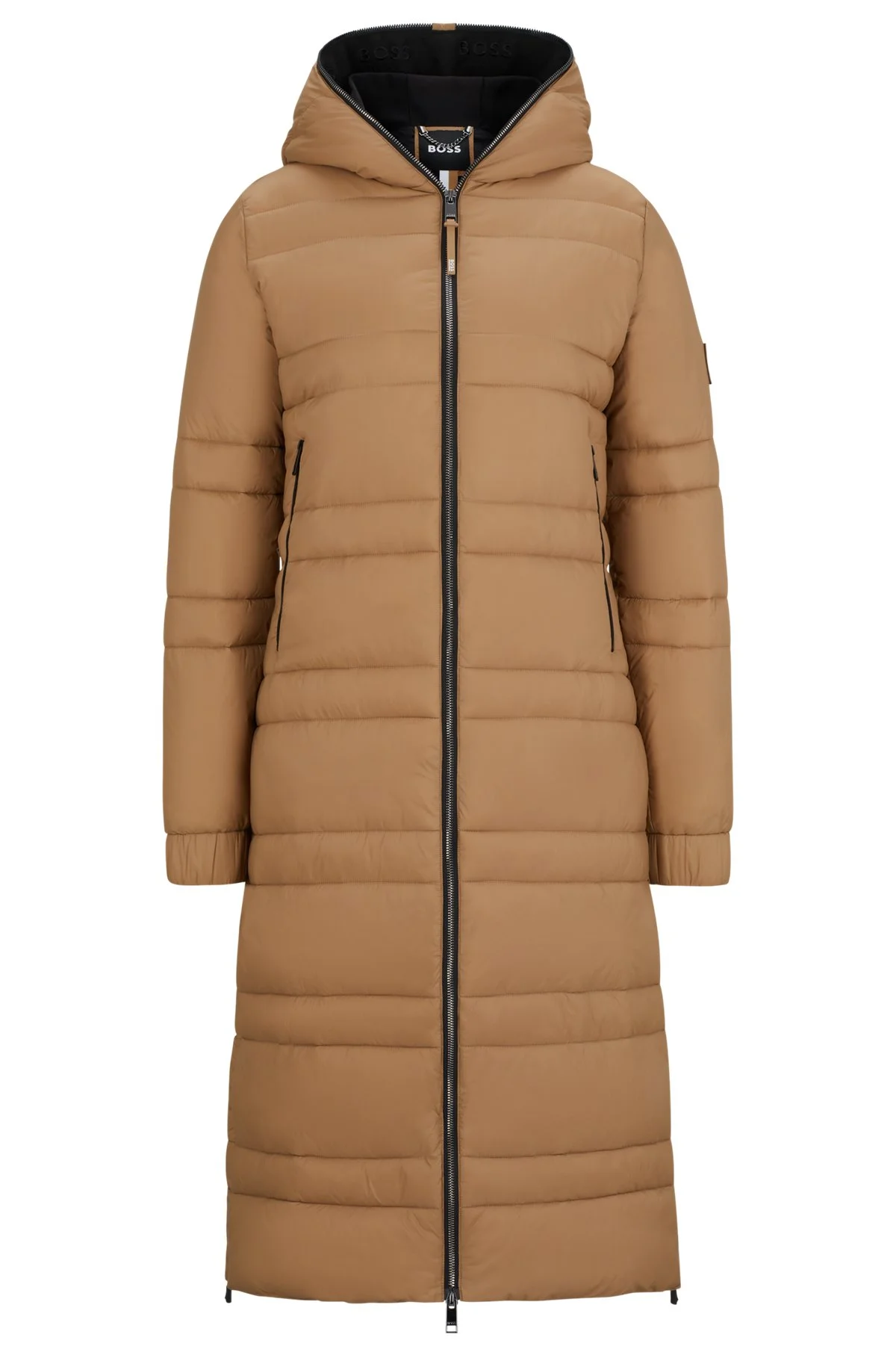 SIZE AND FIT The model wears a size S and is 5'10" tall with a, 32" chest, 23" waist and 35" hips. DETAILS A long puffer jacket by BOSS Womenswear. With adjustable side zips for greater comfort in the saddle, this cozy jacket is crafted in wind- and water-proof material with lightweight padding. Signature trims and a two-way front zip complete this piece. ESMEE LONG PUFFER PARKA - B4W1403 QUALITY & CARE INSTRUCTIONS Do Not Dry Clean Do Not Tumble Dry Material: 100% Polyamid Do Not Iron Do Not Bleach Machine Wash Cold Gentle