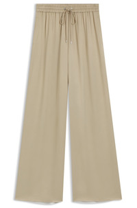 SIZE AND FIT The model wears a size 4 and is 5'10" tall with a, 31" chest, 23" waist and 35" hips. DETAILS Crafted in draped satin, these relaxed-fit BOSS Womenswear trousers are perfect for smart and casual looks alike. Adjustable drawstring waist. Extra long length Relaxed fit Elastic Waistband Straight leg Pockets bottom front: Side slash pockets Tavati - 50541835 QUALITY & CARE INSTRUCTIONS Do Not Tumble Dry Iron Low Heat Do Not Bleach Quality: 100% Viscose, pocketing: 100% Viscose Reduced Dry Clean Cold, gentle machine wash; reduced spin speed.
