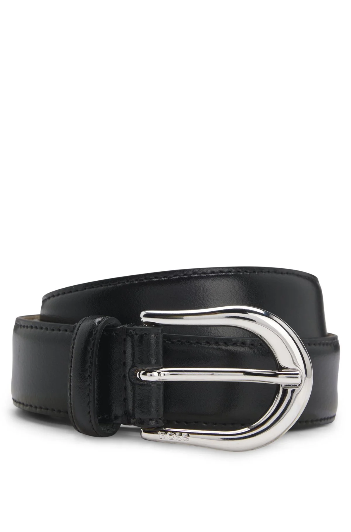 SIZE AND FIT The model wears a size 28 and is 5'9" tall with a, 32" chest, 23" waist and 35" hips. DETAILS Carol-St_Sz30 - 50548621 Add polish to everyday looks with this 3cm BOSS Womenswear belt. Made in Italy from smooth Italian leather. Silver-tone rounded pin buckle. For the best fit, we advise ordering a belt one size larger than your waist size. Engraved logo on closure Width: 3,0 cm (1.2 inches) Hardware finishing: Polished silver hardware Fully lined QUALITY & CARE INSTRUCTIONS Quality: 100% Cow leather