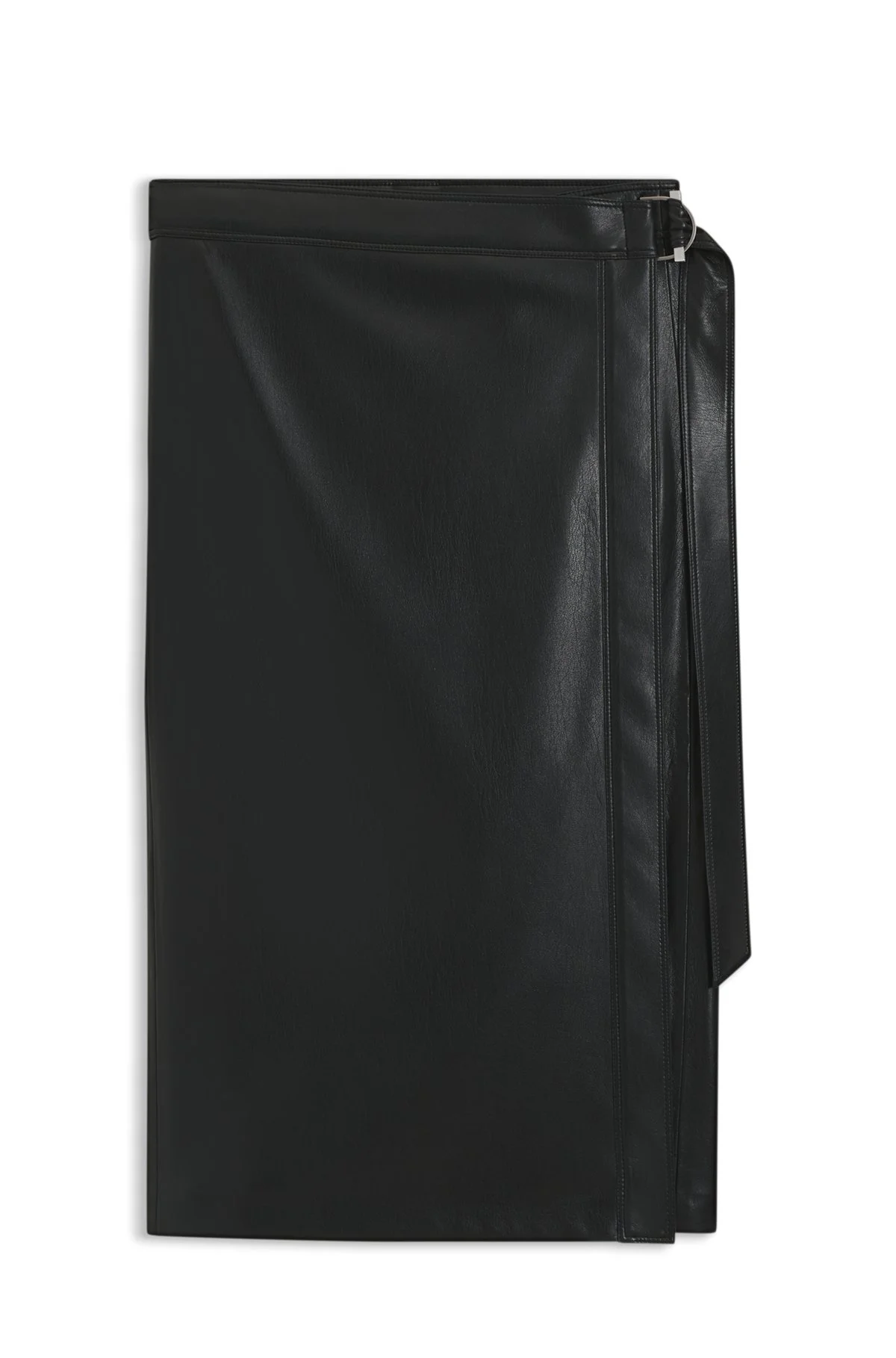 FAUX-LEATHER SKIRT WITH WRAP FRONT