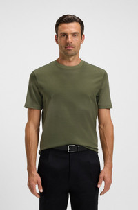 SIZE AND FIT The model wears a size M and is 6'1" tall with a, 0" chest, 27" waist and 33" hips. DETAILS C-Thompson 212 - 50543884 Woven with a geometric jacquard, this BOSS Menswear T-shirt is an elevated take on an essential. Crafted in cotton with an extra-soft mercerized finish. Regular fit Short sleeves Standard length QUALITY & CARE INSTRUCTIONS Reduced Dry Clean Quality: 100% Cotton Machine Wash Cold Gentle Do Not Tumble Dry Do Not Bleach Iron Low Heat