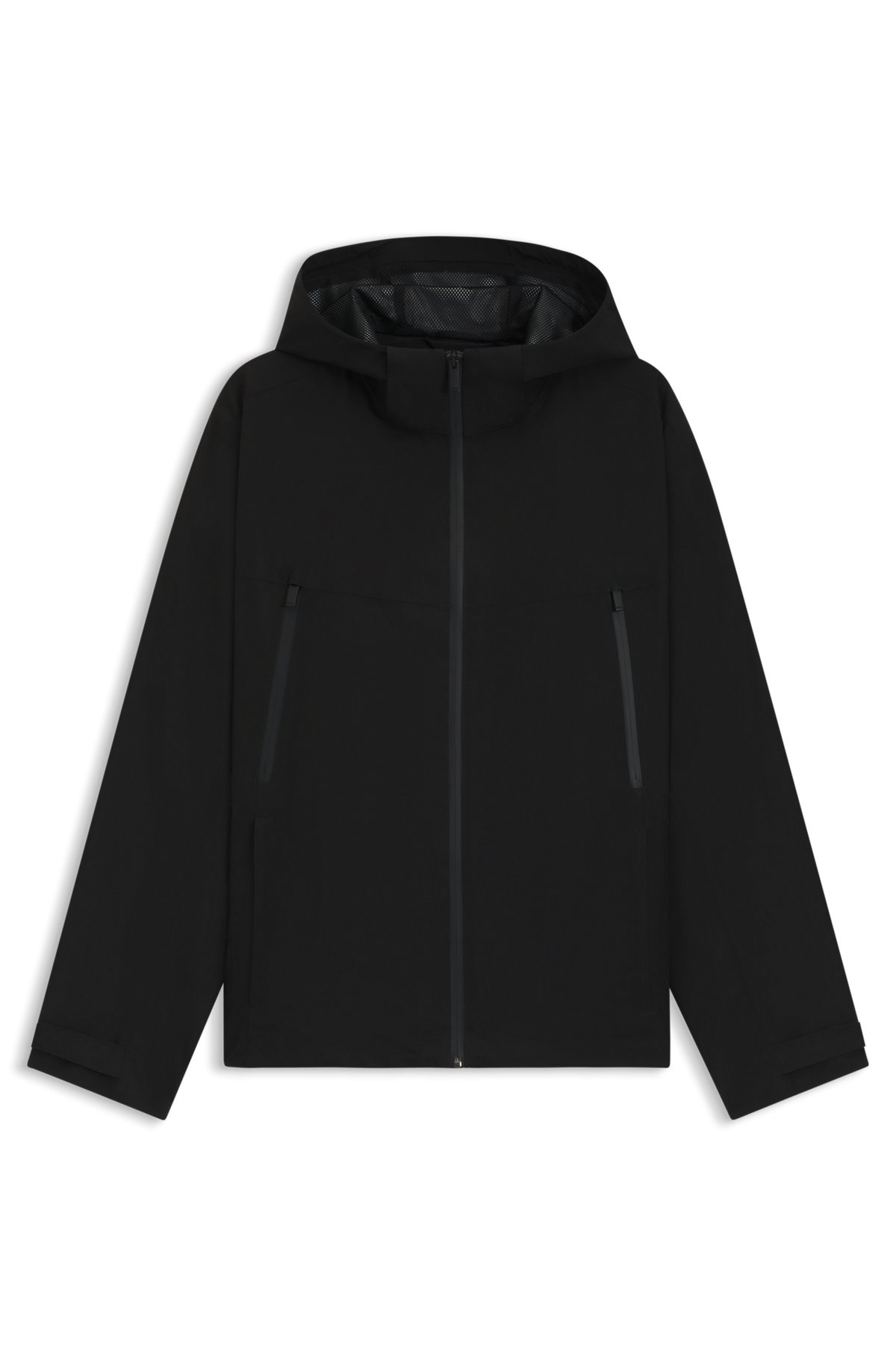 SIZE AND FIT The model wears a size 38R and is 6'1" tall with a, 32" chest, 28" waist and 34" hips. DETAILS P-Com-GORETEX - 50542491 Lightweight and durable, this hooded BOSS Menswear windbreaker is a high-performance option in unpredictable weather. Made with GORE-TEX®, it's waterproof, windproof and breathable. Fit back length: 70 cm (28 inches) QUALITY & CARE INSTRUCTIONS Do Not Dry Clean Do Not Bleach Quality: 100% Polyester, Sleeve lining: 100% Polyamid, mesh lining: 100% Polyester Machine Wash Cold Gentle Tumble Dry Low Heat Iron Low Heat