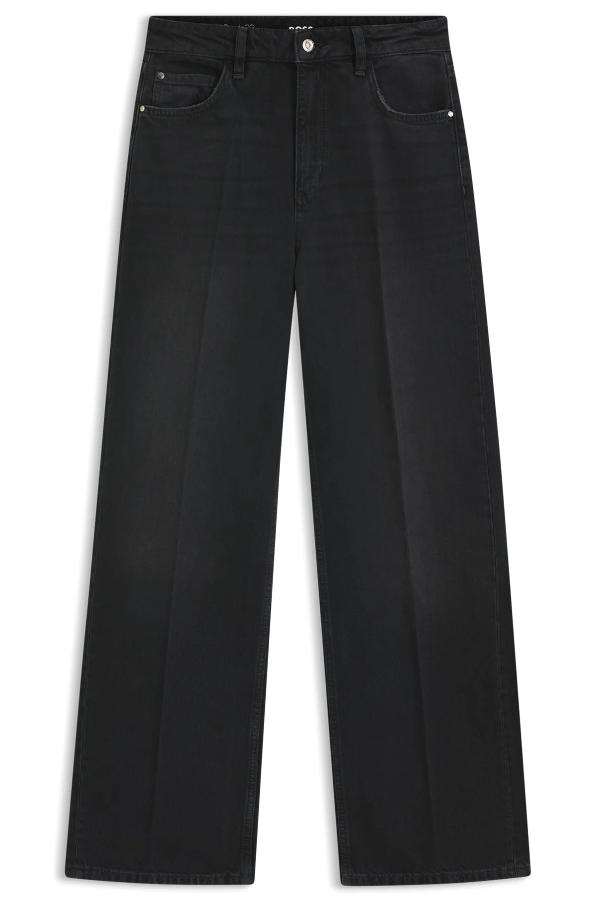 SIZE AND FIT The model wears a size 28/32 and is 5'9" tall with a, 31" chest, 24" waist and 35" hips. DETAILS In a boyfriend fit with a straight leg, these BOSS Womenswear jeans are so easy to style. Soft rigid denim with a gray netted effect. Boyfriend fit Low rise Button and zip closure Pockets bottom front: Side pockets Straight leg Pockets bottom back: Patch pocket Open length CROSSROAD-BF 1 - 50552439 QUALITY & CARE INSTRUCTIONS Do Not Tumble Dry Iron Medium Heat Machine Wash Cold Gentle Do Not Dry Clean Do Not Bleach Material: 64% Cotton, 36% Lyocell