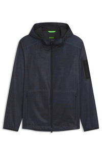 SIZE AND FIT The model wears a size M and is 6'2" tall with a, 36" chest, 31" waist and 38" hips. DETAILS Great for cooler days, this sporty BOSS Menswear parka jacket is designed in laminated mesh with a contemporary print. Partial mesh lining. Zipped sleeve pocket. Fit back length: 75 cm (30 inches) OW_Jump JT HD - 50547720 QUALITY & CARE INSTRUCTIONS Do Not Tumble Dry Do Not Bleach Machine Wash Cold Gentle Iron Low Heat Do Not Dry Clean Material: 100% Polyester, Lining: 100% Polyester