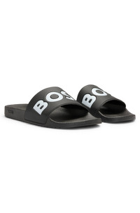 DETAILS Aryeh_Slid_npvlg - 50536835 Signature slides made in Italy by BOSS Menswear. Crafted in lightweight materials, this summery pair has a large BOSS logo on the upper. Fastening top: Slip-on Partially lined Sole: Other material Packaging: Box QUALITY & CARE INSTRUCTIONS Upper material: 98% Polyvinylchlorid, 2% Polyurethane, Lining: 100% Polyester, Sole: 70% Polyvinylchlorid, 30% Thermoplastic polyurethane , Innersole: 70% Polyvinylchlorid, 30% Thermoplastic polyurethane