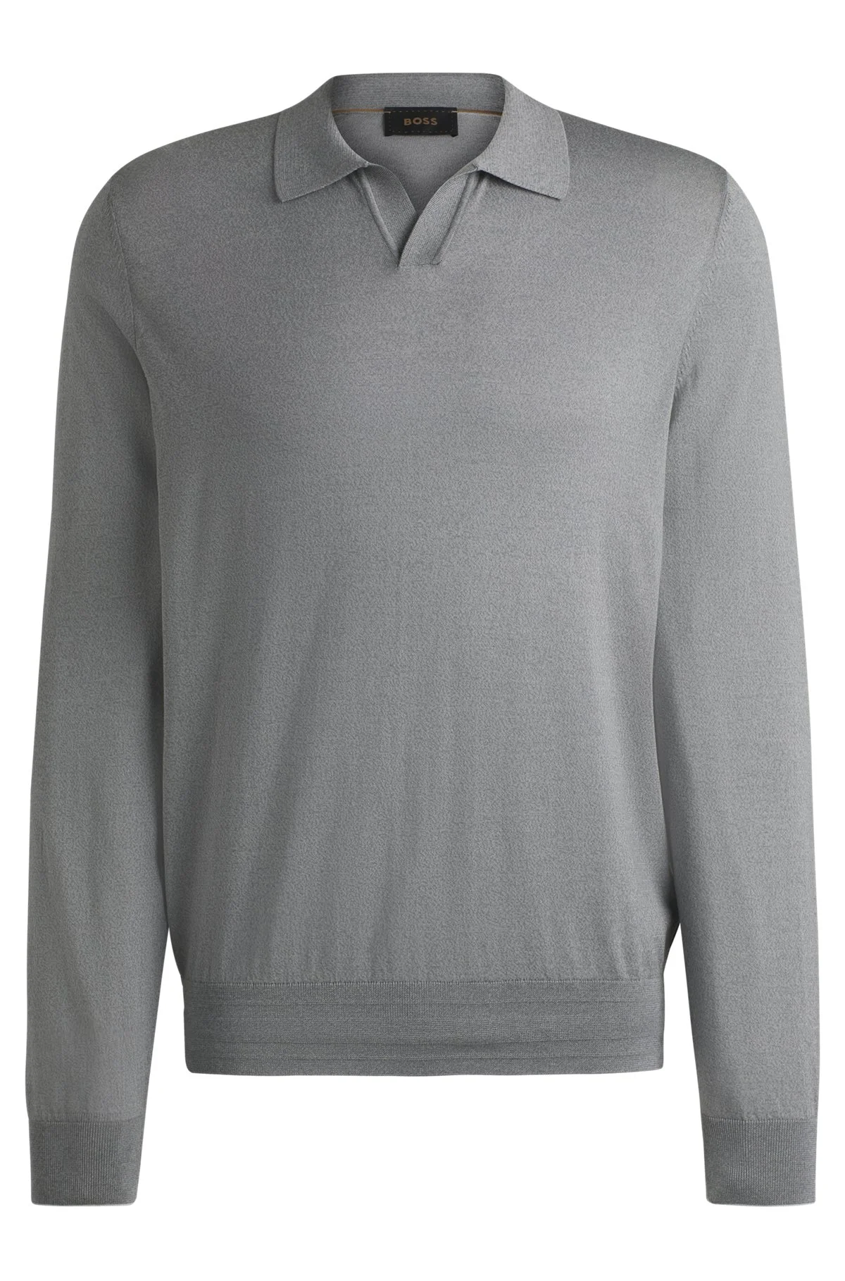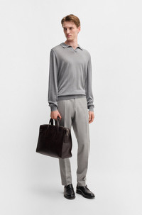 SIZE AND FIT The model wears a size M and is 6'2" tall with a, 36" chest, 31" waist and 35" hips. DETAILS L-Beso - 50530839 An elegant sweater knitted in silk and cotton by BOSS Menswear. This layer is cut to a regular fit and topped with a Johnny collar. Regular fit Neckline: Polo collar Long sleeves Standard length QUALITY & CARE INSTRUCTIONS Do Not Bleach Cold, gentle machine wash; reduced spin speed. Do Not Tumble Dry Iron Medium Heat Dry Clean Only Quality: 57% Silk, 43% Cotton