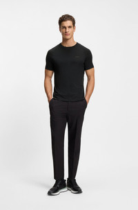 SIZE AND FIT The model wears a size M and is 6'2" tall with a, 38" chest, 30" waist and 37" hips. DETAILS Offering reliable thermoregulation and moisture management thanks to wool in the blend, this slim BOSS Menswear T-shirt provides active comfort. With added stretch. Flatlock stitching. Slim fit Neckline: Crew neck Short sleeves Standard length TS_Tour Wool - 50554646 QUALITY & CARE INSTRUCTIONS Do Not Tumble Dry Do Not Dry Clean Material: 78% Lyocell, 19% Wool, 3% Elastane Iron Low Heat Hand Wash Only Do Not Bleach