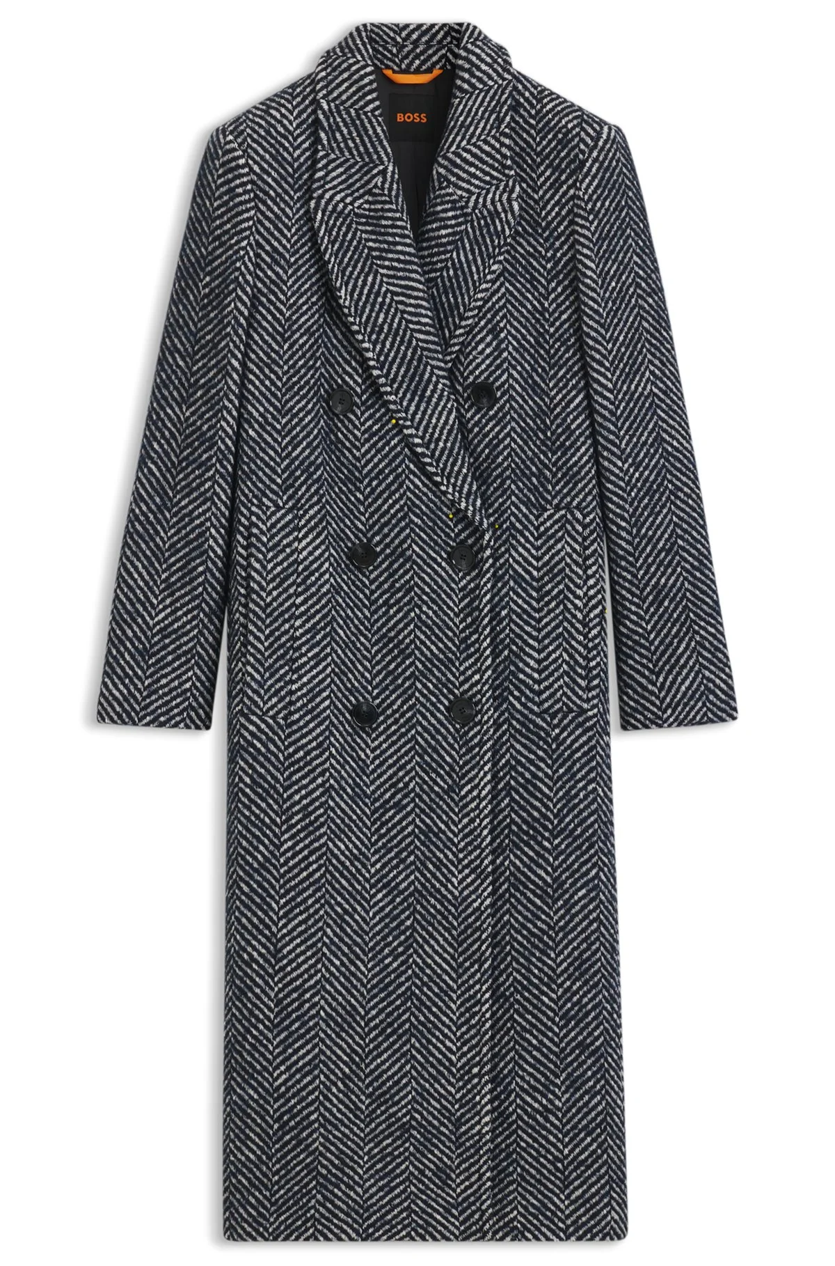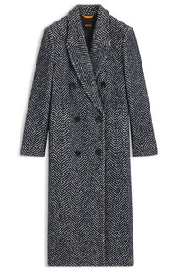 DETAILS With its timeless double-breasted silhouette, this BOSS Womenswear coat is updated with a sophisticated large-scale herringbone. Blended with soft wool and cotton. Fit back length: 120 cm (47 inches) C_Covalli - 50548092 QUALITY & CARE INSTRUCTIONS Do Not Bleach Reduced Dry Clean Material: 5% Viscose, 45% Cotton, 25% Wool, 12% Polyester, 8% Polyacrylic, 5% Other fibres, Lining: 55% Polyester, 45% Viscose Do Not Wash Iron Low Heat Do Not Tumble Dry