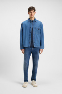 SIZE AND FIT The model wears a size 32/32 and is 6'2" tall with a, 37" chest, 30" waist and 37" hips. DETAILS RE.MAINE BO - 50544633 Regular-fit jeans by BOSS Menswear with a tapered leg. Crafted in super-stretch blue denim, made with cozy slub yarns, for unbeatable comfort. Regular fit Regular rise Button and zip closure Pockets bottom front: Side pockets Tapered leg Pockets bottom back: Patch pocket Standard length Fit foot width: 38,0 cm (15.0 inches) QUALITY & CARE INSTRUCTIONS Quality: 10% Viscose, 79% Cotton (37% recycled), 10% Polyester, 1% Elastane Iron Medium Heat Machine Wash Cold Gentle Do Not Dry Clean Do Not Tumble Dry Do Not Bleach