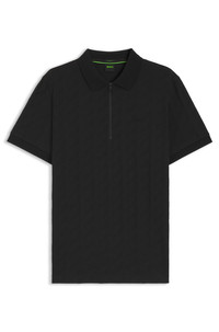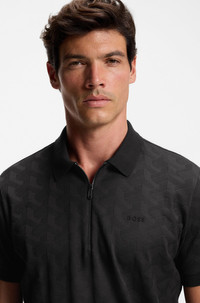 DETAILS Upgrade your active options with the moisture-managing mercerized cotton of this BOSS Menswear polo shirt. Dynamic jacquard pattern. Sporty zip placket. Relaxed fit. Relaxed fit Neckline: Flat-knit collar Fastening top: Zip closure Short sleeves Flat-knit cuffs Standard length PL_Mirror QZ - 50548653 QUALITY & CARE INSTRUCTIONS Iron Low Heat Do Not Tumble Dry Material: 100% Cotton Do Not Bleach Do Not Dry Clean Machine Wash Cold Gentle