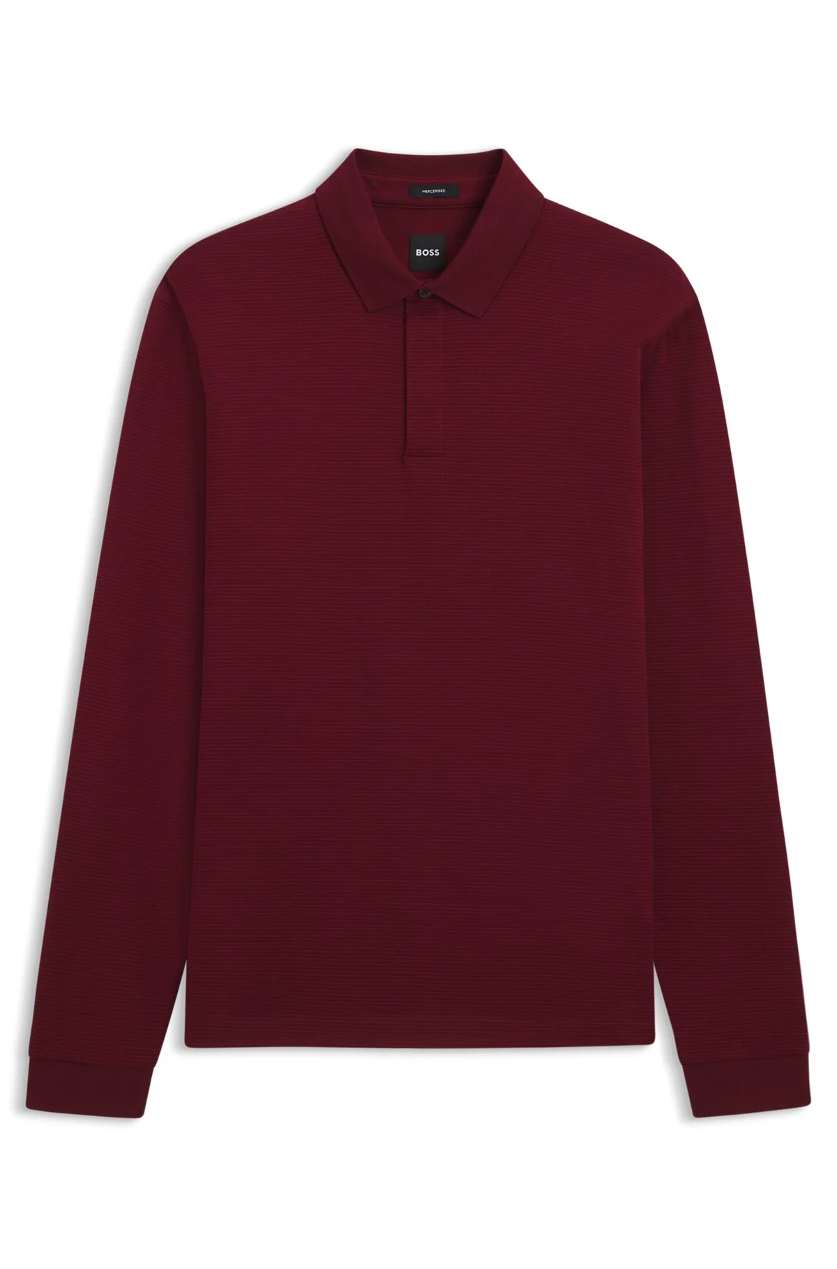 SIZE AND FIT The model wears a size M and is 6'1" tall with a, 36" chest, 29" waist and 37" hips. DETAILS The rich structure of this BOSS Menswear polo shirt is offset by the plain collar. Straight fit with concealed closure. Extra-soft mercerized cotton. Regular fit Neckline: Polo collar Number of buttons: 2 Long sleeves Ribbed cuffs Side slit H-Pado 432 - 50544254 QUALITY & CARE INSTRUCTIONS Do Not Bleach Material: 100% Cotton Do Not Tumble Dry Machine Wash Cold Gentle Iron Low Heat Reduced Dry Clean