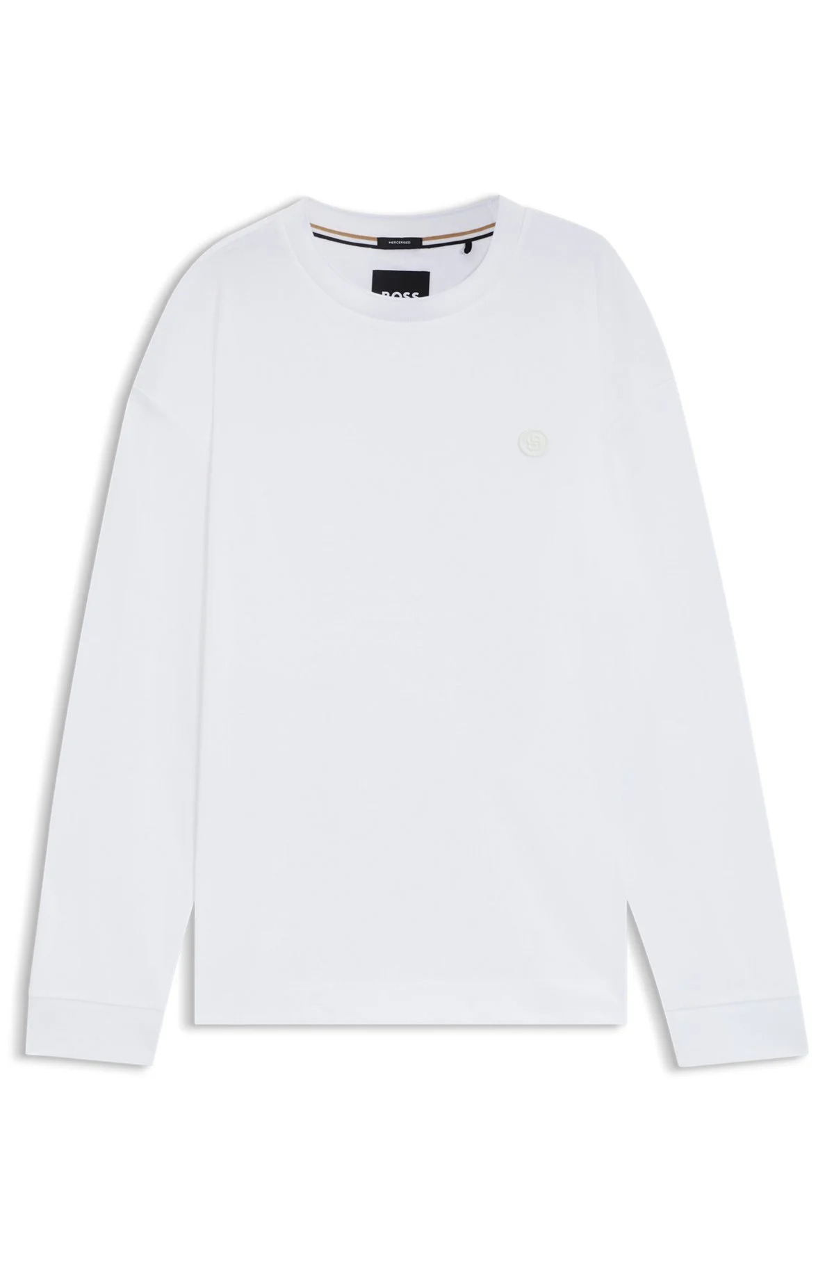 SIZE AND FIT The model wears a size M and is 6'1" tall with a, 36" chest, 29" waist and 37" hips. DETAILS Relaxed and extra soft, this BOSS Menswear T-shirt will quickly become a daily favorite. Rich mercerized cotton. Double B monogram trim. Relaxed fit Long sleeves Side slit C-Tubby 116 - 50557846 QUALITY & CARE INSTRUCTIONS Material: 100% Cotton Do Not Dry Clean Machine Wash Cold Gentle Do Not Bleach Do Not Tumble Dry Iron Low Heat