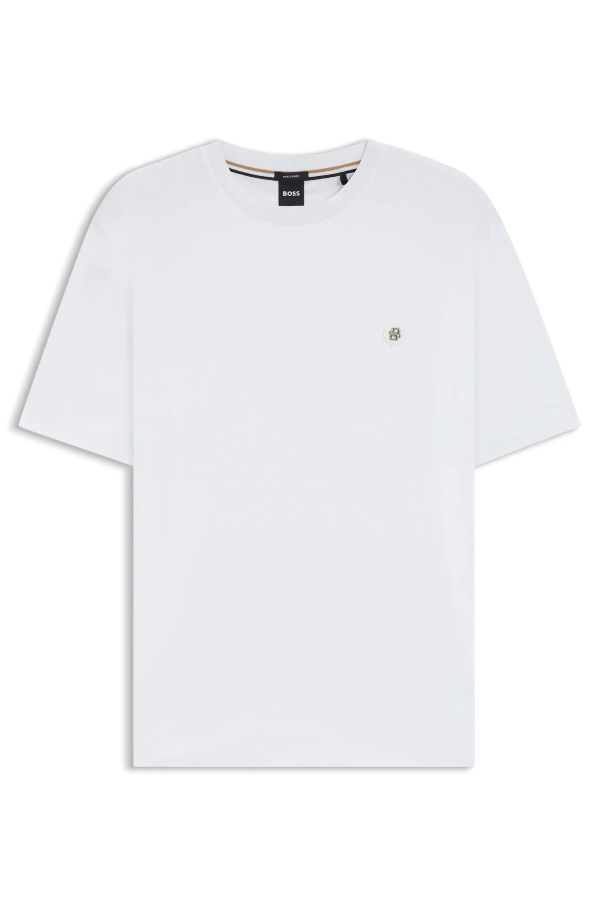 SIZE AND FIT The model wears a size M and is 6'1" tall with a, 36" chest, 29" waist and 36" hips. DETAILS Featuring a metallic Double B monogram at the left chest, this BOSS Menswear T-shirt is crafted in mercerized cotton for a super-soft feel. Regular fit Neckline: Crew neck Short sleeves Standard length C-Taut 01 - 50520298 QUALITY & CARE INSTRUCTIONS Iron Low Heat Do Not Bleach Machine Wash Cold Gentle Do Not Tumble Dry Material: 100% Cotton Do Not Dry Clean