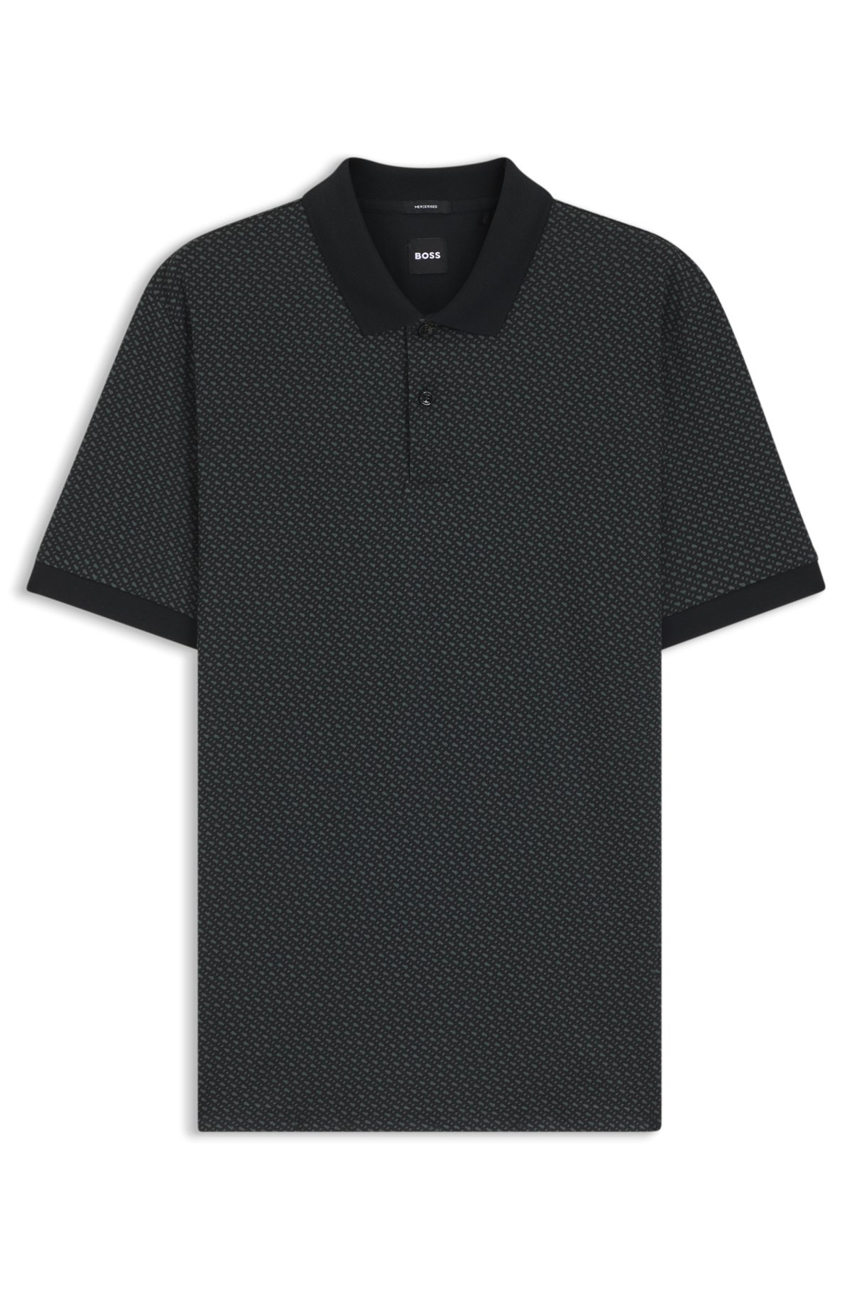 DETAILS H-Parlay 206 - 50554324 Mercerized for elevated softness and sheen, this regular-fit BOSS Menswear polo shirt is a refined casual option. Two-tone monogram pattern and plain collar. Regular fit Neckline: Polo collar Short sleeves Standard length QUALITY & CARE INSTRUCTIONS Quality: 100% Cotton Machine Wash Cold Gentle Do Not Dry Clean Do Not Tumble Dry Do Not Bleach Iron Low Heat