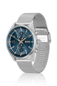 MESH-BRACELET CHRONOGRAPH WATCH WITH BLUE DIAL