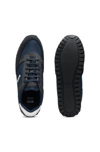 DETAILS Parkour-L_Runn_ny_N - 50498133 Sporty trainers by BOSS. Featuring mixed-material uppers with synthetic coated fabric details, this pair has a raised logo and lightweight outsole. Synthetic coated fabric, sometimes referred to as faux leather, is a fabric designed to resemble real leather, and/or display a matte, glossy, smooth, or textured, coated appearance. This product is partly created with recycled polyester. We at HUGO BOSS prefer recycled polyester from pre- and post-consumer textile waste and do our best to phase out polyester from PET bottles. The aim of using recycled materials is to save valuable resources. Laces Fully lined Packaging: Box QUALITY & CARE INSTRUCTIONS Upper material: 100% Polyester, Lining: 100% Polyester, Sole: 60% Ethylene vinyl acetate, 40% Rubber, Facing: 100% Cow leather, 60% Polyester, 40% Polyurethane, Innersole: 48% Polyester, 48% Viscose (Bamboo - Cellulose), 4% Polyurethane