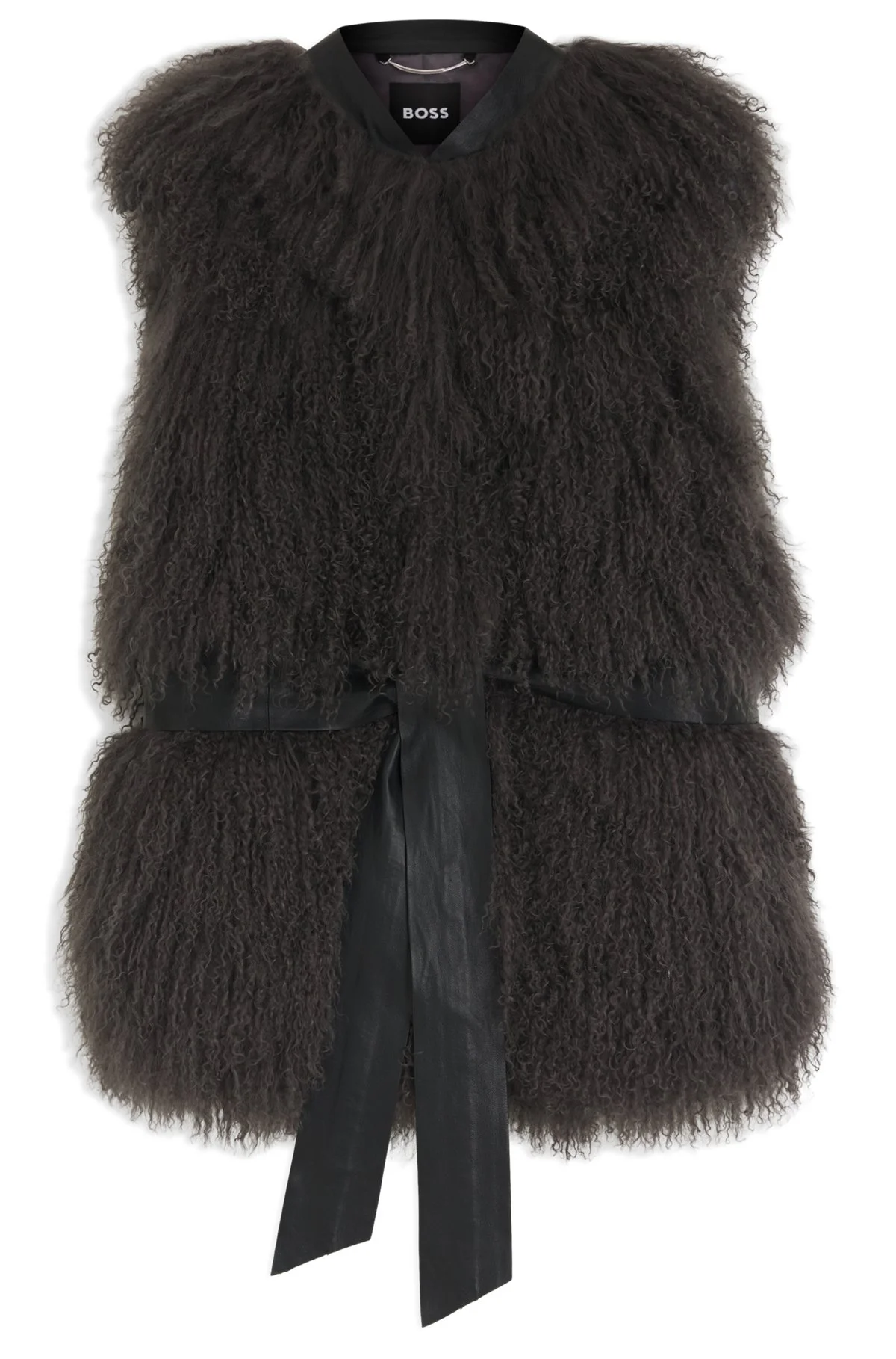 MONGOLIAN-SHEARLING GILET WITH DETACHABLE LEATHER BELT