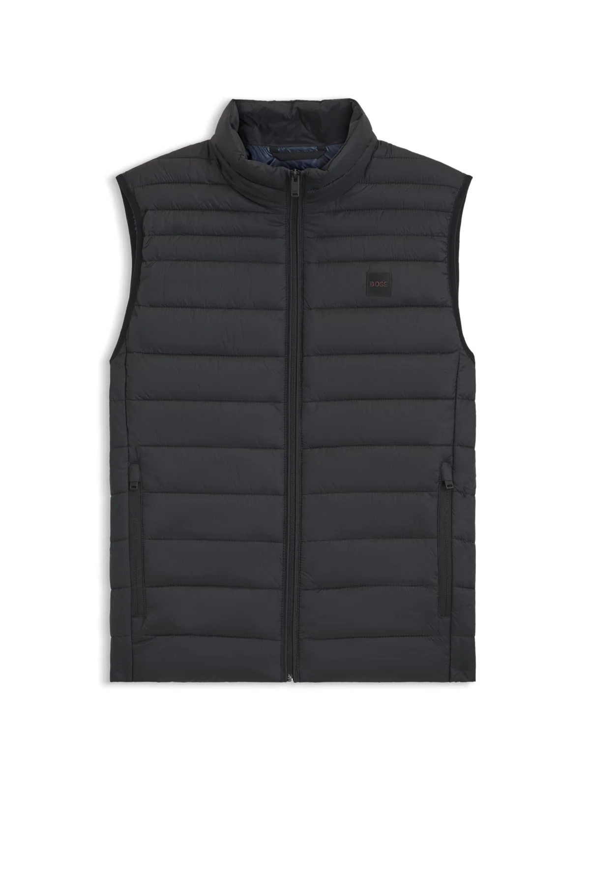 DETAILS In a slim, packable design, this BOSS Menswear gilet is great between seasons. Water repellent with lightweight padding. Cozy zipped pocketing and inner welt pocket. Slim fit Short length Fit back length: 67 cm (26 inches) Odeno2 - 50549243 QUALITY & CARE INSTRUCTIONS Quality: 100% Polyamide, Filling: 100% Polyester, lining yoke: 100% Polyamid, Body Lining: 100% Polyamid Iron Low Heat Do Not Dry Clean Machine Wash Cold Gentle Do Not Bleach Tumble Dry Low Heat