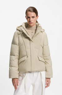 DETAILS Pepule5 - 50546845 Featuring ribbed trims and lightweight filling, this regular-fit BOSS Womenswear jacket is great for transitional weather. Modern piping and flattering cutlines. Regular fit Hooded collar Fastening top: Zip closure Pockets top: Flap pockets Ribbed cuffs Standard length Fit back length: 58 cm (23 inches) QUALITY & CARE INSTRUCTIONS Tumble Dry Low Heat Machine Wash Cold Gentle Do Not Dry Clean Quality: 100% Polyester (60% recycled), Lining: 100% Polyamid, Filling: 100% Polyester, Cuff: 95% Polyester, 5% Elastane Do Not Bleach Iron Low Heat