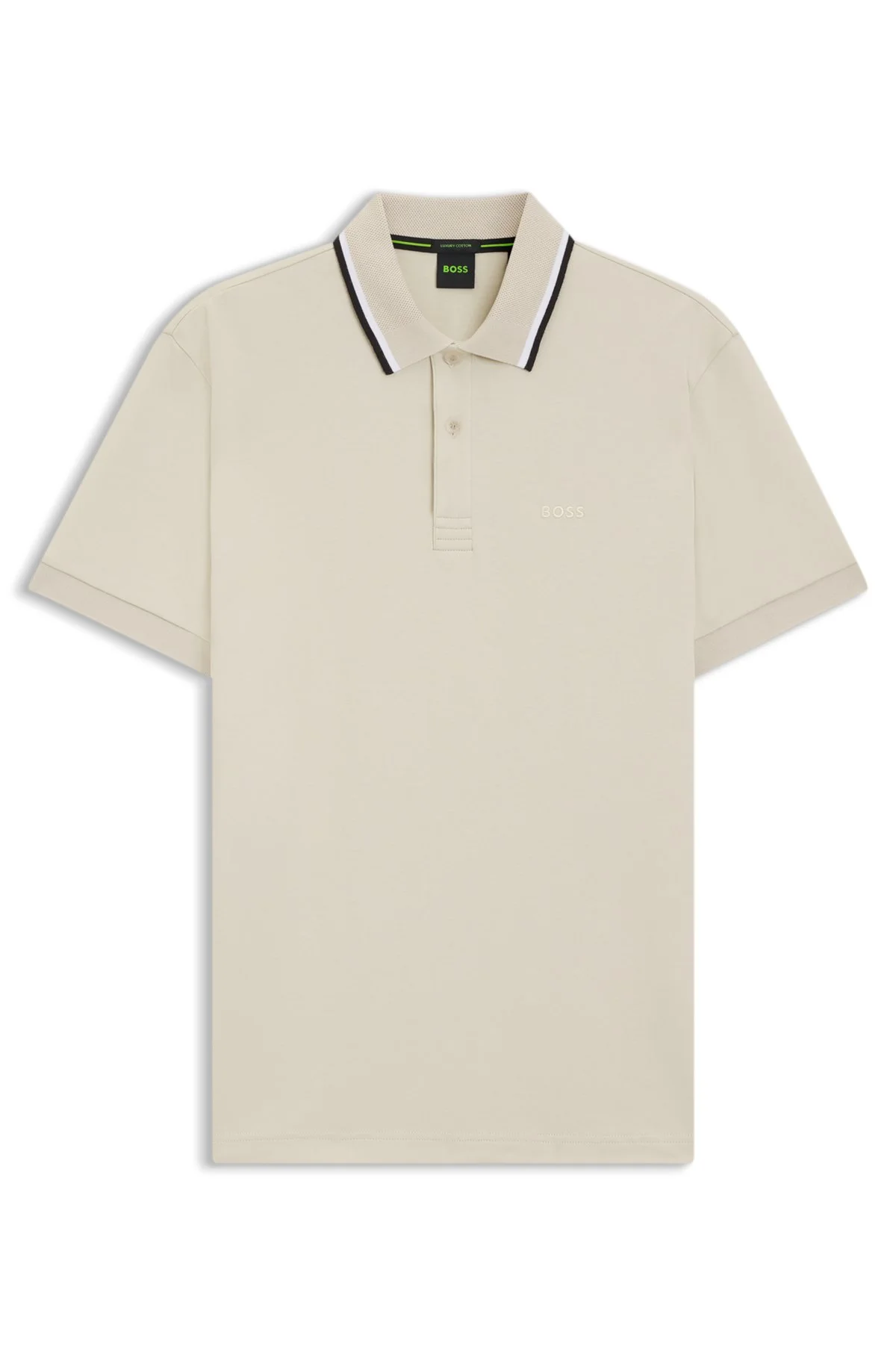 SIZE AND FIT The model wears a size M and is 6'2" tall with a, 38" chest, 29" waist and 38" hips. DETAILS With a slim profile in interlock cotton, this BOSS Menswear polo shirt will quickly become a favorite. Collar with structure and stripe details. Embroidered logo. Slim fit Neckline: Flat-knit collar Number of buttons: 3 Short sleeves Flat-knit cuffs Standard length PL_Join Paddy - 50554565 QUALITY & CARE INSTRUCTIONS Material: 100% Cotton Do Not Bleach Do Not Tumble Dry Cold, gentle machine wash; reduced spin speed. Do Not Dry Clean Iron Low Heat