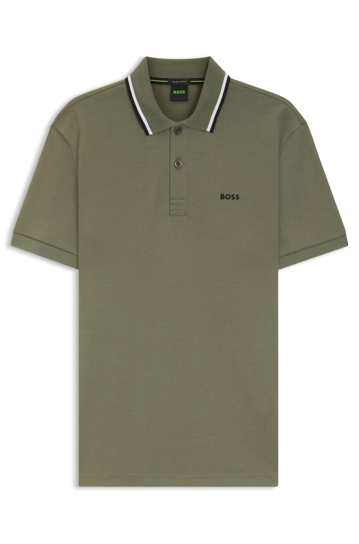 SIZE AND FIT The model wears a size M and is 6'2" tall with a, 38" chest, 29" waist and 38" hips. DETAILS With a slim profile in interlock cotton, this BOSS Menswear polo shirt will quickly become a favorite. Collar with structure and stripe details. Embroidered logo. Slim fit Neckline: Flat-knit collar Number of buttons: 3 Short sleeves Flat-knit cuffs Standard length PL_Join Paddy - 50554565 QUALITY & CARE INSTRUCTIONS Iron Low Heat Do Not Tumble Dry Material: 100% Cotton Do Not Dry Clean Do Not Bleach Cold, gentle machine wash; reduced spin speed.