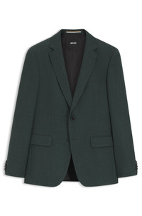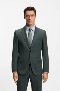 SIZE AND FIT The model wears a size 38R and is 6'1" tall with a, 37" chest, 29" waist and 35" hips. DETAILS With its subtle micro pattern and clean fit, this BOSS Menswear blazer is a flexible formal choice. Crafted in virgin wool with stretch for comfort. Slim fit Fully lined H-Huge-253 - 50564106 QUALITY & CARE INSTRUCTIONS Do Not Tumble Dry Do Not Wash Do Not Bleach Iron Low Heat Material: 99% Virgin wool, 1% Elastane, Lining: 100% Viscose, Sleeve lining: 100% Viscose Reduced Dry Clean