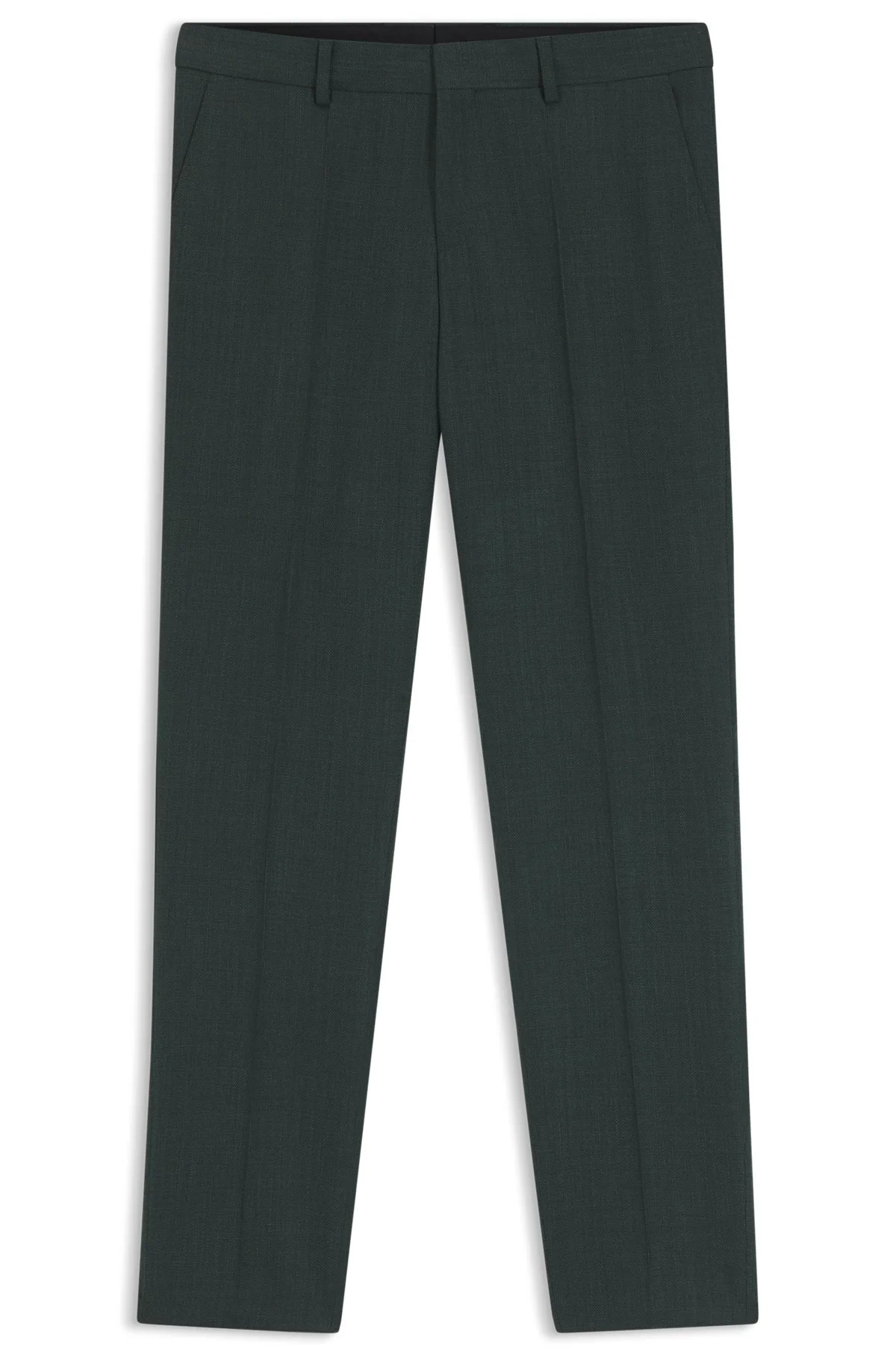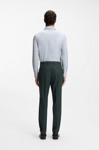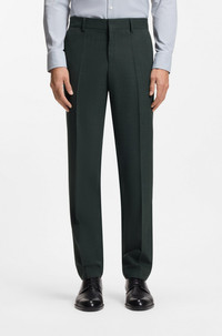 SIZE AND FIT The model wears a size 32R and is 6'1" tall with a, 37" chest, 29" waist and 35" hips. DETAILS Designed in virgin wool with added stretch for flexibility, these subtly patterned BOSS Menswear trousers are easy to style. Cut to a slim fit. Slim fit Hook and zip closure Pleat front Pockets bottom front: Side slash pockets Pockets bottom back: Welt pocket Partially lined H-Genius-253 - 50564107 QUALITY & CARE INSTRUCTIONS Do Not Tumble Dry Do Not Wash Iron Low Heat Reduced Dry Clean Do Not Bleach Material: 99% Virgin wool, 1% Elastane, pocketing: 65% Polyester, 35% Cotton, knee lining: 100% Viscose