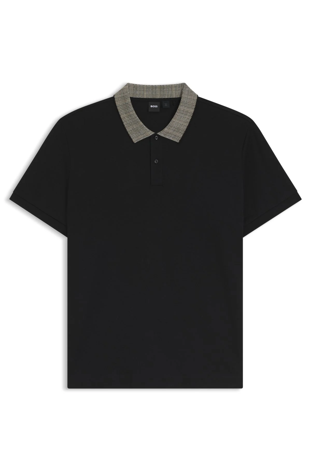 PIMA-COTTON POLO SHIRT WITH PATTERNED COLLAR