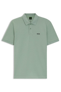 SIZE AND FIT The model wears a size M and is 6'2" tall with a, 41" chest, 33" waist and 40" hips. DETAILS Cut in quick-dry pique made from 100% cotton, this printed BOSS Menswear polo shirt is a dynamic choice. Four-way stretch. Regular fit Regular fit Neckline: Flat-knit collar Number of buttons: 2 Short sleeves Flat-knit cuffs Standard length PL_GOC Chip Pattern - 50554591 QUALITY & CARE INSTRUCTIONS Machine Wash Cold Gentle Material: 100% Cotton Do Not Dry Clean Do Not Bleach Iron Low Heat Do Not Tumble Dry