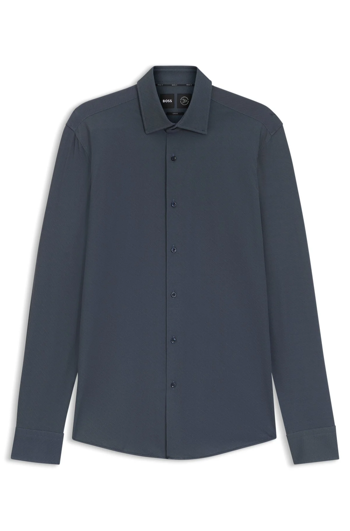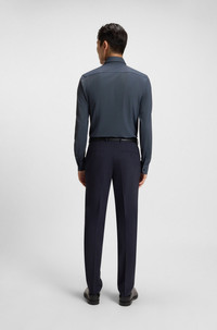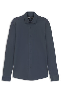 SIZE AND FIT The model wears a size 15.5 and is 6'1" tall with a, 36" chest, 29" waist and 36" hips. DETAILS P-HANK-kent-C1-222 - 50545428 Offering breathable comfort and moisture management, this slim-cut BOSS Menswear shirt is a must on busy days. Performance-stretch fabric with twill print. Slim fit Kentkragen Round cuffs QUALITY & CARE INSTRUCTIONS Quality: 87% Polyamide, 13% Elastane Do Not Tumble Dry Machine Wash Cold Gentle Iron Low Heat Do Not Bleach Dry Clean Only