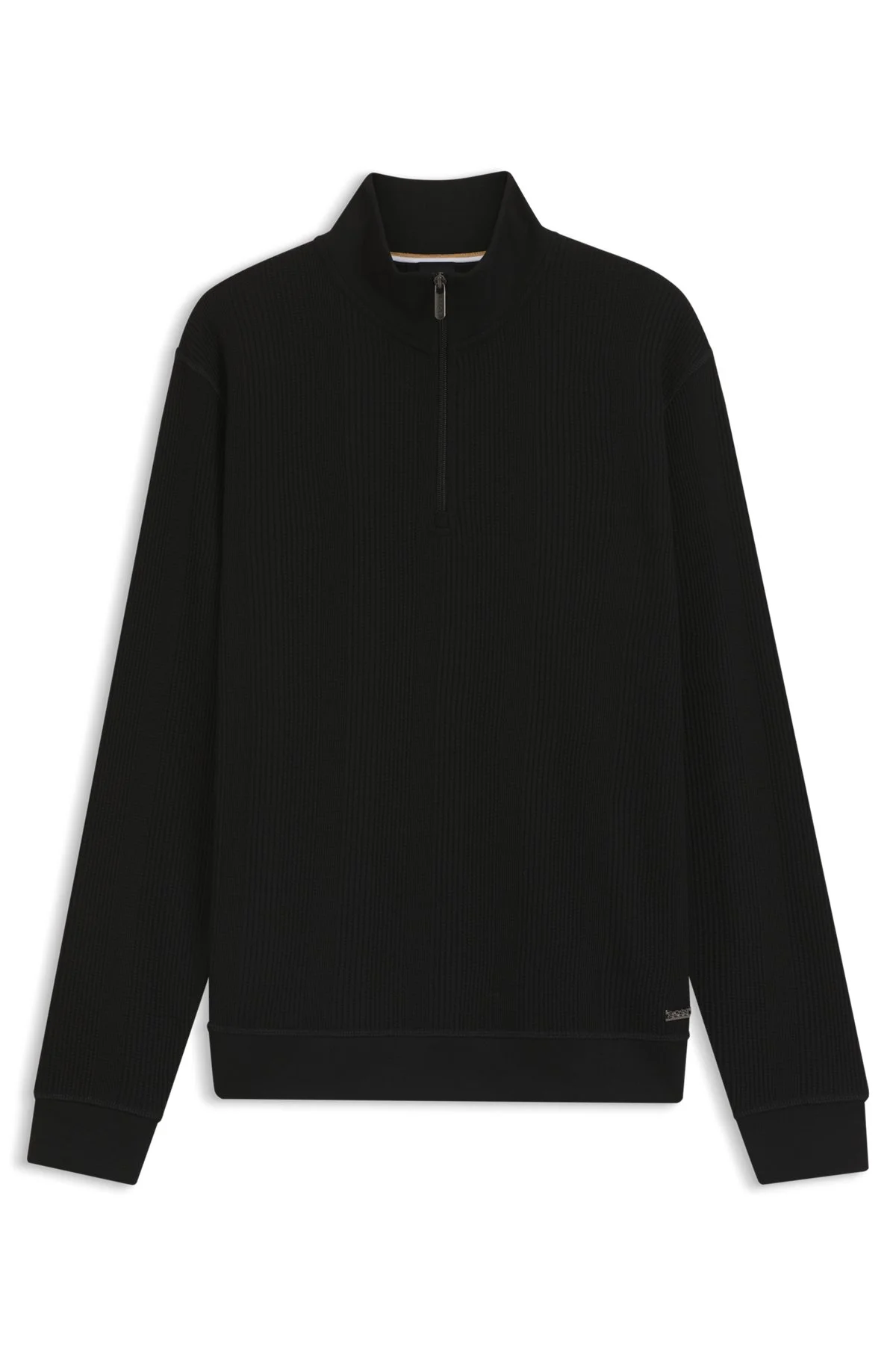 SIZE AND FIT The model wears a size M and is 6'0" tall with a, 38" chest, 29" waist and 38" hips. DETAILS In cotton with a waffle structure, this zip-neck BOSS Menswear sweatshirt is a casual classic. Easy straight fit. Metal logo trim. Regular fit Neckline: Zip neck Structure 1/4 Zip - 50545597 QUALITY & CARE INSTRUCTIONS Machine Wash Warm Do Not Dry Clean Do Not Bleach Do Not Tumble Dry Iron Medium Heat Material: 60% Cotton, 40% Polyester