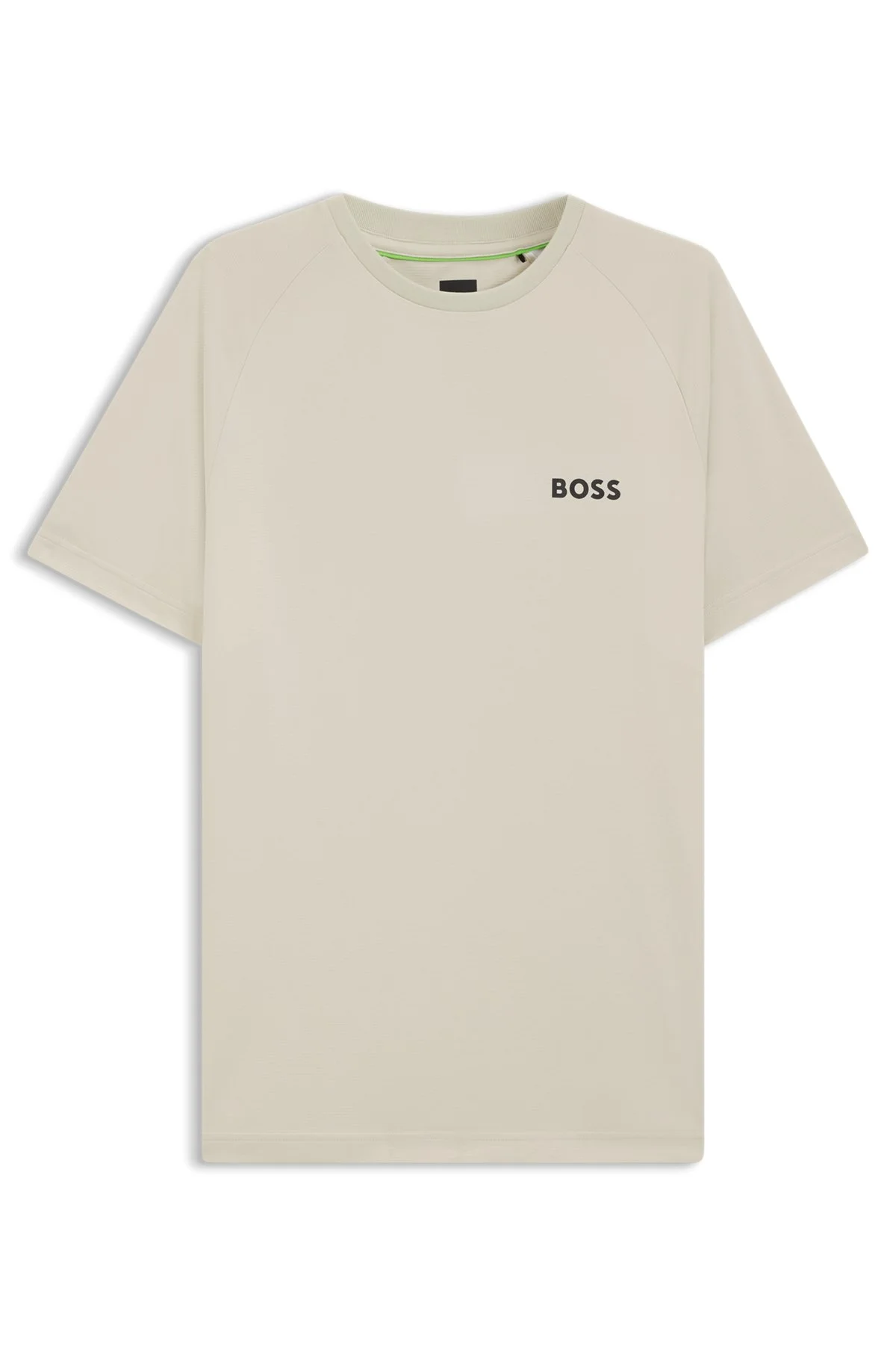 SIZE AND FIT The model wears a size M and is 6'2" tall with a, 38" chest, 30" waist and 37" hips. DETAILS Offering comfortable stretch and moisture management, this BOSS Menswear T-shirt is a must for sports. Slim fit Contrast logo and inserts. Signature-stripe details. Slim fit Neckline: Crew neck Short sleeves Standard length TS_TOC Spin CB - 50554544 QUALITY & CARE INSTRUCTIONS Do Not Tumble Dry Material: 100% Polyester (97% recycled) Machine Wash Cold Gentle Do Not Dry Clean Iron Low Heat Do Not Bleach