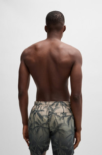SIZE AND FIT The model wears a size M and is 6'2" tall with a, 37" chest, 28" waist and 37" hips. DETAILS Zen - 50520506 Fully lined swim shorts by BOSS. Featuring a logo detail, this quick-dry pair is printed with a seasonal motif to match the coordinating shirt. QUALITY & CARE INSTRUCTIONS Machine Wash Cold Quality: 100% Polyester, Lining: 100% Polyester Do Not Iron Do Not Bleach Do Not Tumble Dry Do Not Dry Clean