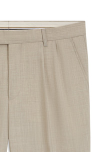 SIZE AND FIT The model wears a size 32R and is 6'1" tall with a, 33" chest, 24" waist and 36" hips. DETAILS C-Perin-DPL-TU-253 - 50545822 Crafted in rich wool with natural stretch, these BOSS Menswear trousers match any formal look. Tapered fit with pleats. Turned-up hems. Subtle pattern. Tapered fit Button and zip closure Pleat front Pockets bottom front: Side slash pockets Pockets bottom back: Flap pocket Partially lined QUALITY & CARE INSTRUCTIONS Iron Low Heat Do Not Tumble Dry Do Not Bleach Do Not Wash Quality: 100% Virgin wool, pocketing: 65% Polyester, 35% Cotton Reduced Dry Clean