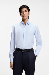 SIZE AND FIT The model wears a size 15.5 and is 6'1" tall with a, 34" chest, 30" waist and 36" hips. DETAILS With a micro-monogram jacquard on Italian-made cotton, this BOSS Menswear shirt is an elevated evening choice. Easy-wear regular fit with concealed placket. Regular fit Kentkragen Angled cuffs H-JOE-K-H-261 - 50556498 QUALITY & CARE INSTRUCTIONS Do Not Bleach Iron Medium Heat Do Not Tumble Dry Dry Clean Only Material: 100% Cotton Machine Wash Warm