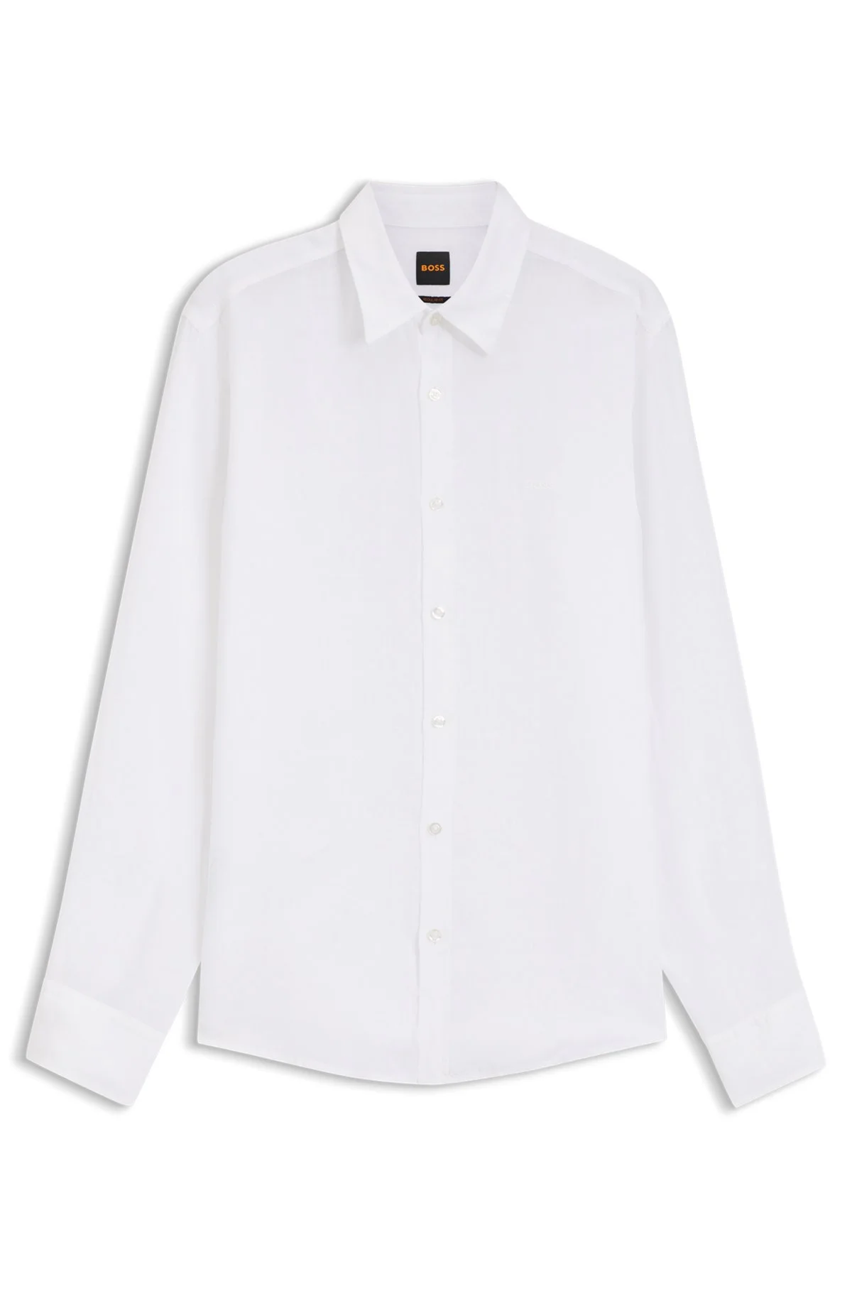 DETAILS Cut to an easy regular fit, this BOSS Menswear shirt is crafted in soft, summery linen. Logo detail at the left chest. Regular fit Kentkragen Patch chest pockets Barrel cuffs Relegant_6_M - 50567579 QUALITY & CARE INSTRUCTIONS Machine Wash Cold Iron Low Heat Do Not Bleach Material: 100% Linen Do Not Tumble Dry Do Not Dry Clean