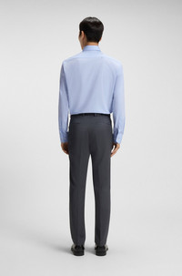 SIZE AND FIT The model wears a size 15.5 and is 6'1" tall with a, 37" chest, 29" waist and 37" hips. DETAILS H-JOE-spread-C1-222 - 50479948 A refined business shirt by BOSS Menswear. Trimmed with a signature stripe inside the spread collar, this regular-fit shirt is crafted in soft cotton blended with stretch and woven with a twill structure. A contrast button at the base of the placket completes this elegant piece. Regular fit Spread collar Angled cuffs QUALITY & CARE INSTRUCTIONS Iron Low Heat Dry Clean Only Do Not Bleach Do Not Tumble Dry Machine Wash Warm Gentle Quality: 97% Cotton, 3% Elastane